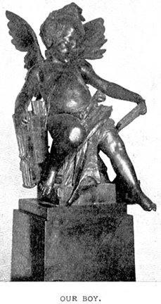 A HAPPY DAY We hope, and believe--that the relations between LIFE's contributors and himself are exceptionally friendly and congenial. This belief, that his affection for his co-workers is reciprocated--at least in a measure-is strengthened by the unfading memory of a certain afternoon in October, 1894. On that memorable day Mr. Miller and I went to lunch, as usual, with no suspicion of what awaited us. When lunch was over, and a movement was made as for departure, Mr. Metcalfe gave some reason for sitting longer at the table--a reason which impressed me at the moment as being unduly ambiguous and inconsequential. But it served. So we continued to sit. Mr Metcalfe, in the meantime, disappeared. On reaching the office some minutes later, we were surprised at finding a score or more of our regular contributors seated in a circle, in the center of which stood a bronze statue of LIFE, by Martiny. This statue was a reproduction in bronze of the stone figure over the main entrance of our building, done by the same sculptor. The surprise was certainly complete. Mr. Metcalfe, as spokesman for those assembled, presented the statue in a few words, and very pleasant words they were for LIFE to hear. They bore good wished and the expression on the part of our contributors of that affection and confidence which LIFE, in his turn has always felt toward the donors of that more than welcome gift. The bronze boy himself, a figure, of exceptional beauty and artistic value, has, ever since that day, held the place of honor in our temple. |