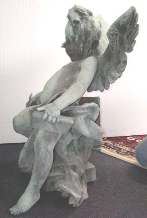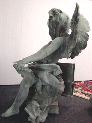 Early into my research for the Herald Square Hotel, formerly the Life (Magazine) Building, I found several references to a bronze statue that was a replica of "Winged Life" over the entrance. It had been presented to John Ames Mitchell and Andrew Martin in October of 1894. I discovered a couple of articles describing the presentation as well as a picture of "Winged Life" aka "Our Boy". One day when I was giving information to the owner of the Hearld Square Hotel (originally constructed as the Life Building) I said I believed the bronze replica had to be in existence. We did a bit of searching on the web and through some old-fashioned letter writing. It didn1t even generate any leads. In the fall of 2002 we began to rejuvenate our interest on several angles of the history of the magazine. I began to do work upgrading and revisiting all the artists that worked for "Life". The owner of the hotel began to undertake some major renovations to bring new life to the Hotel. We talked about and searched for the sculpture for nearly 7 years. On December 24, 2002 Abe, the HSH owner received a message from a gentleman in South Carolina who claimed to have the bronze statue. He wanted to return it to the Life Building for a very modest sum of money. After all that searching--"winged Life" asked us to bring him home. Our harbinger of this great news is a relative of Claire Maxwell, the last owner of Life Magazine before it was sold to the Time-Life Corporation in 1936. When the sale was complete, it did not include the statue. Mr. Maxwell kept the statue in his family. It moved from New York City to St. Augustine, Florida and was passed from father to son. The current owners decided that rather than sell it outside the family it should be returned to its original temple of love and friendship. It will soon welcome each and every guest to the Herald Square Hotel--a hotel with a special, deep, rich history. - Nadine Charlsen |
